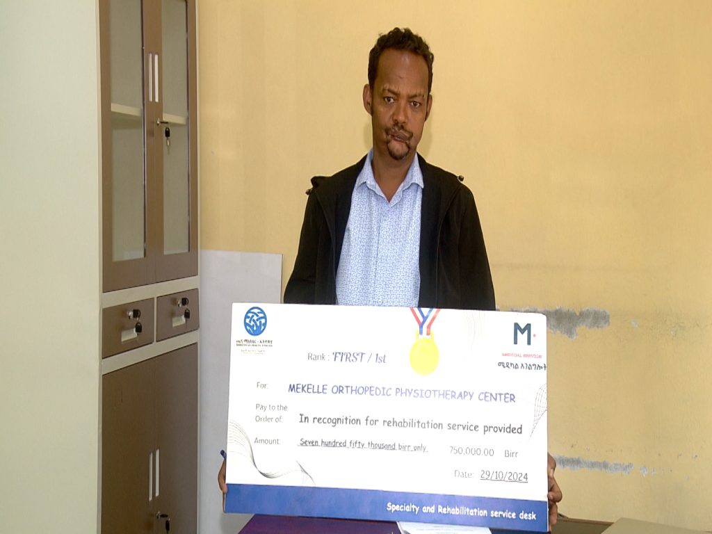 In a landmark achievement, the Mekelle Ortho-Physiotherapy Center, operated by the Tigray Disabled Veterans Association (TDVA), has been awarded first place among Ethiopia’s 15 rehabilitation centers by the Federal Ministry of Health using World Health Organization standards, accompanied by a 1.2 million ETB prize for exceptional service.